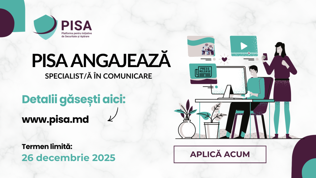 TERMENI DE REFERINȚĂ specialist/ă în comunicare Platforma pentru Inițiative de Securitate și Apărare (PISA) este o organizație neguvernamentală independentă care promovează o Moldovă sigură și rezilientă. PISA oferă expertiză prin analize, instruiri, publicații și evenimente, susținând totodată supravegherea democratică și implicarea publicului în sectorul de securitate și apărare. PISA lansează concurs pentru poziția de specialist/ă în […]