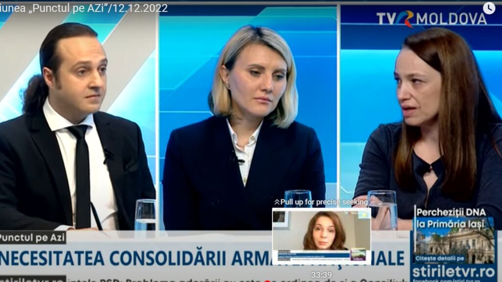 Natalia Albu, director executiv, Platforma pentru Inițiative de Securitate și Apărare; Elena Mârzac, expertă în securitate și comunicare strategică și Gheorghe Oarză, colonel, şef Direcție Transformare, Ministerul Apărării al Republicii invitații emisiunii „Punctul pe AZi”Moldova